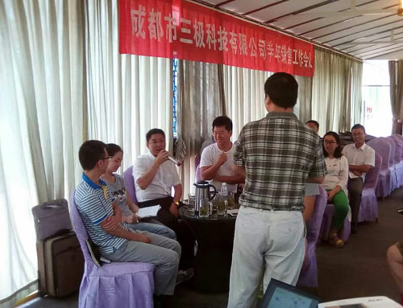 三極科技銷售總監(jiān)總結(jié)了上半年的銷售工作。公布了上半年年取得的成績,分析了上半年銷售工作中存在的問題及原因,對下半年銷售工作進行了安排部署。調(diào)整了人員結(jié)構(gòu),制定了新的銷售激勵政策。同時各區(qū)域的銷售經(jīng)理也相互分享了自己的經(jīng)驗。