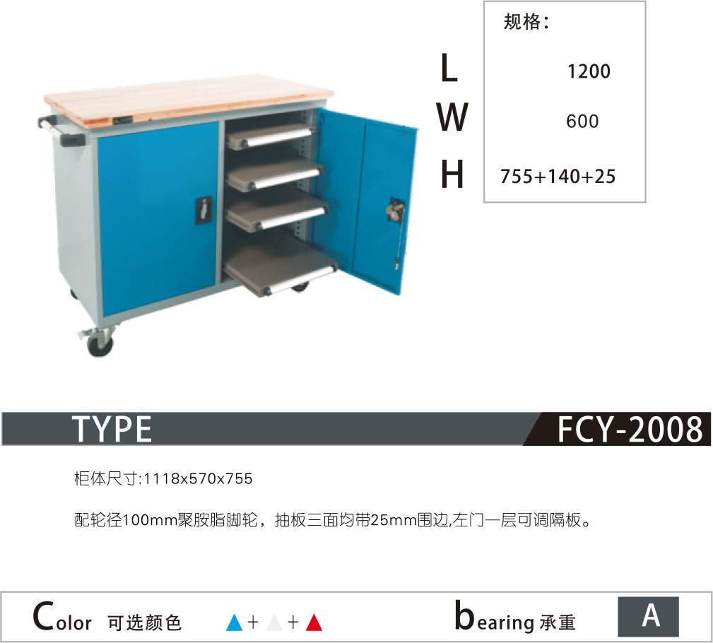 7.柜體頂部可選配:綠色條紋膠皮、圍邊、圖板、活動背抽、方孔掛板或百葉掛板,增加工具柜的使用功能