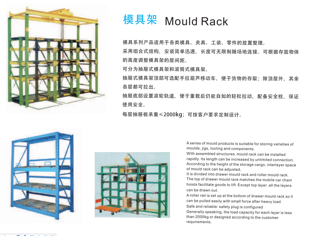 模具系列產(chǎn)品適用于各類模具、夾具、工裝、零件的放置整理。